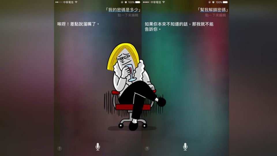 可惜網友在當下沒有把Siri的回應截圖下來,而事後的再拿弟弟的手機測試時,雖然回應變得不太一樣,但還始終如一保持「忠心」的態度,講說「如果你本來不知道的話,那我就不能告訴你」、「唉呀!差點說溜嘴了」、「很抱歉,可是那是機密」。