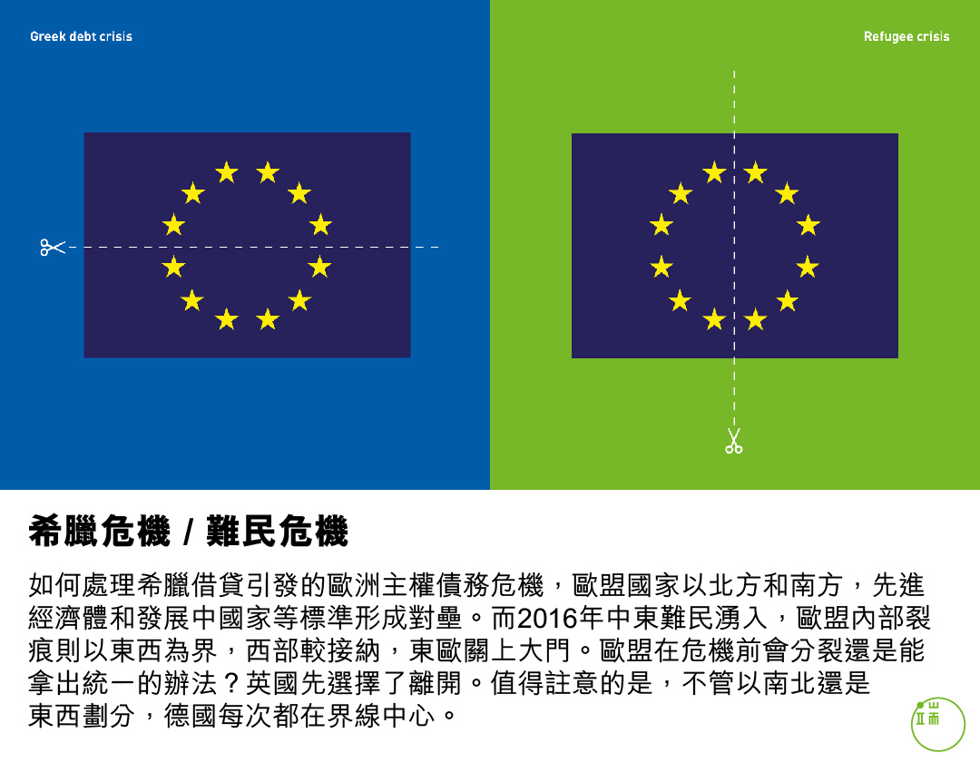 ▼今昔相遇:希臘危機/難民危機。(圖:端傳媒設計組)