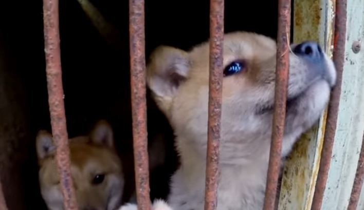 直擊南韓肉狗繁殖場,沒有陽光、沒有生機、沒有希望,只是純粹的煉獄。當人還沒靠近,這些剛被拯救的狗狗們開始擺出警戒姿態。隨著攝影機越來越近,有幾隻開始渾身顫抖,甚至連站都站不起來。即使待在牆角,這些狗狗們仍舊感到不安與恐懼,只能到處走動,深怕又要命喪刀下,成為人類餐桌上一盤盤肥美的狗肉。