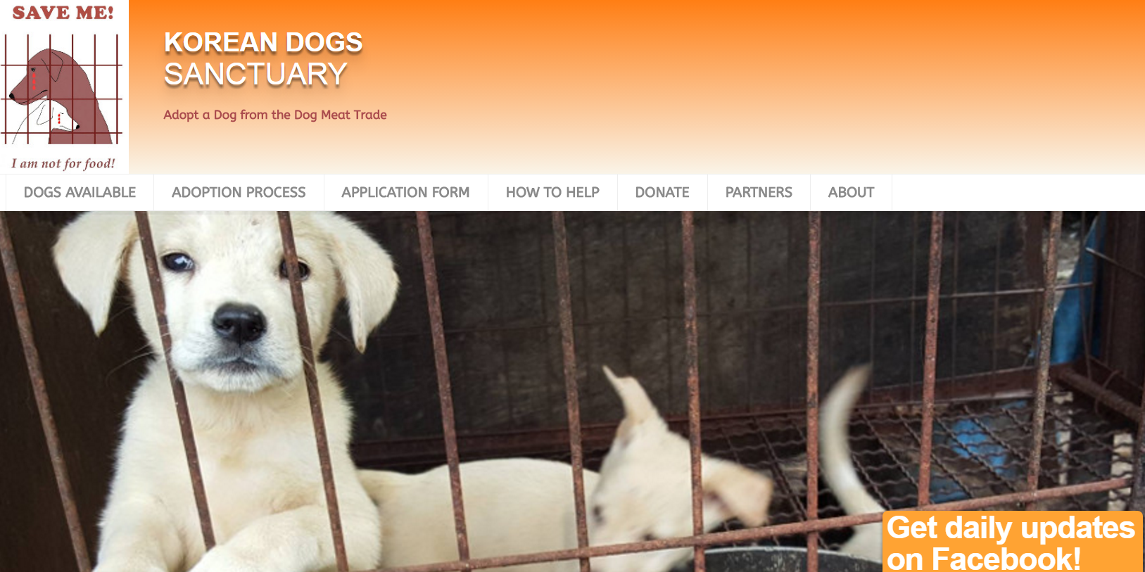 韓國內有約1.7萬個狗肉農場,雖然年輕人們不太會吃狗肉,但每年仍有250萬隻狗慘死刀下,約有10萬噸的狗肉成為人類盤中飧。在南韓,任何品種的狗都能成為食物,大至拉布拉多,小至吉娃娃,只要是走失或被棄養在街上的狗,幾乎難逃一死的命運。