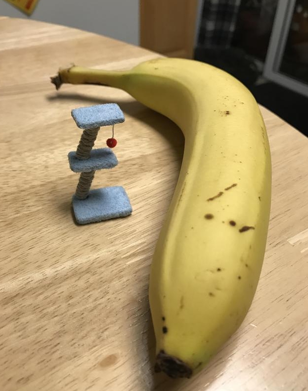 ▼「三層樓高跳台」比香蕉還小,難怪貓傻眼!(圖/翻攝reddit)