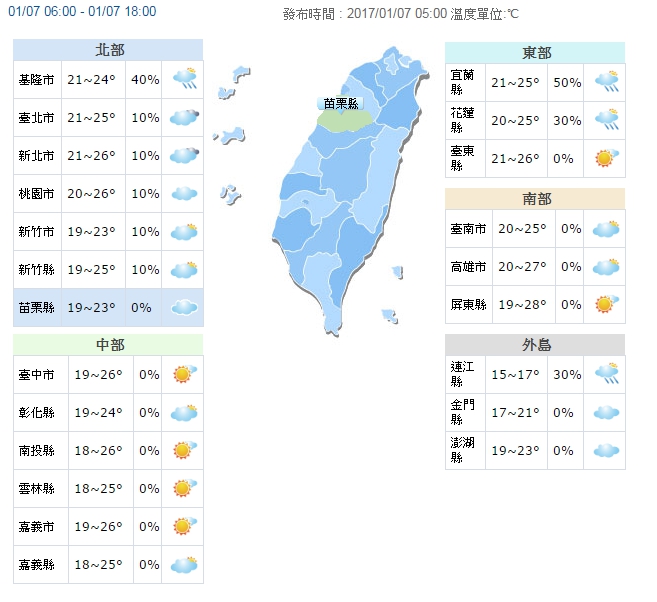 中央氣象局表示,今日東北風減弱,各地白天大多為多雲到晴,只有東半部地區及北部山區有局部短暫雨。而白天在太陽加熱下,全台高溫都有機會來到25至28度,感受上較為溫暖舒適,適合安排戶外活動,也適合進行年節前的大掃除活動,但是中南部空氣品質依然不佳,提醒呼吸道敏感的朋友外出要多留意,溫差較大,早出晚歸也要記得添加衣物。