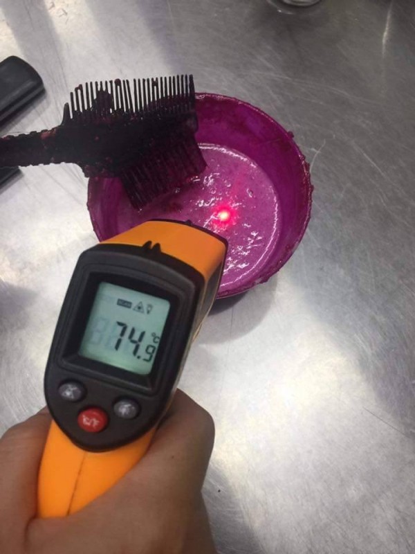 染髮會傷髮質,難道就是這個原因?不少人為了愛漂亮會時常染髮,但染髮不僅傷髮質,還可能對健康造成影響,有位網友在臉書述說自己的染髮過程,指出日前到某家髮廊染髮時,看到整碗紅紫色染劑膨脹冒泡泡,嚇得不禁直呼可怕,但店家卻說:「這很正常!」沒想到,該網友事後實測,才發現該染劑溫度竟然高達75度,當場傻眼。