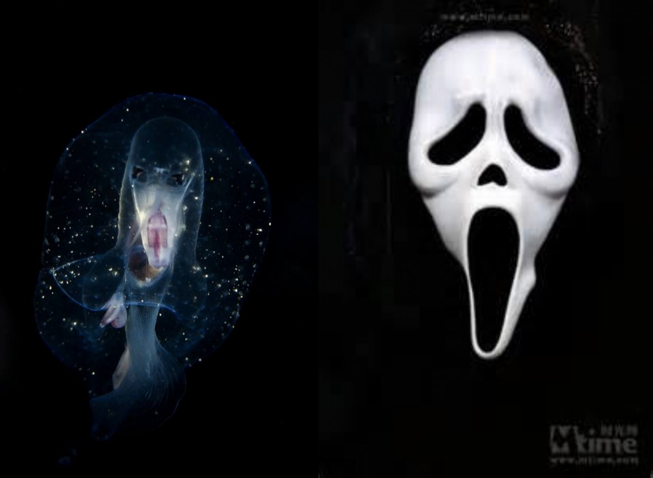 根據《自由時報》報導,平常就非常喜歡拍攝海底細微生物的阿海,回想當時在墾丁西海岸潛水時,巧遇這個鬼臉生物的當下,完全沒注意到牠的特殊長相,還不以為意地和其他生物一起合影了好幾張,等到回家後坐在電腦前一一檢視自己的豐盛成果,忽然被螢幕上超大的鬼臉給嚇得半死,仔細一看才驚覺是當時拍到的透明生物,完完全全被大自然奧妙給「開了玩笑」。