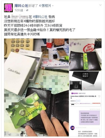 網友表示自己在皮夾中發現金融卡後,立刻傳送訊息通知客服人員,表示「是否有買家退貨前將金融卡遺留在皮夾內,請問要如何處理」但客服人員尚未回應。其他網友紛紛留言:「快檢查看看有沒有密碼」、「一夾兩吃」、「買皮夾送卡我這輩子沒見過」、「CK另類行銷」。也有網友指出:「網路商品7天鑑賞期,大家都沒有想過,鑑賞期退回去的貨會去哪裡嗎?」這句話讓許多網友十分驚訝,紛紛懷疑自己網購究竟是買全新品,還是別人用過的二手商品。