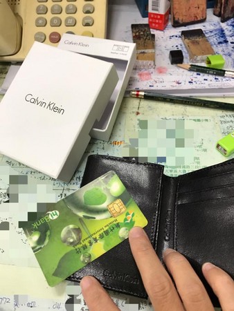 在網友PO出的照片中,只見原本黑色短夾是裝在印有CK字樣的白色包裝盒中。原本是在普通不過的皮夾中,竟然夾了一張綠色的金融卡,上頭寫著「新竹國際商業