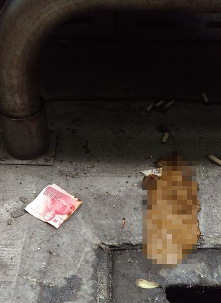 從網友分享的照片可以看到,100元鈔默默地躺在地板,折角的地方還沾有一些糞便,完全沒有人敢撿起來帶走,殊不知往右方看去,如魔鬼般的惡屎癱軟在地上,致命的惡臭似乎可以透過螢幕飄散到鼻前,讓人連1秒都不敢多看,但是,卻有一張高額500元的鈔票淹沒在糞堆裡,只露出了一點點的折角,讓人看了既心動又怕受傷害,撿也不是,不撿也不是,到底該怎麼辦?