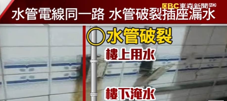 水電師傅范清福則表示,水應該是從別間流過來的,老房子管線比較複雜,可能剛好這插座的背後是樓上水管電線會經過的地方,結果水管破裂,一旦樓上用水順著流下來,就會變成樓下淹水,不過他也說這樣的情況應該維修費只要1萬多塊而已。
