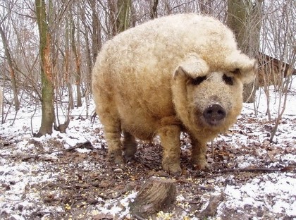 這是全身長滿羊毛的豬?還是有著豬頭的綿羊呢?這可不是後製合成的圖,牠是來自匈牙利的一種動物,叫做曼加利察豬,全身佈滿了厚重的捲毛,如果沒有看到牠的豬鼻子,乍看之下就像一隻綿羊一樣,可是非常稀有的品種!