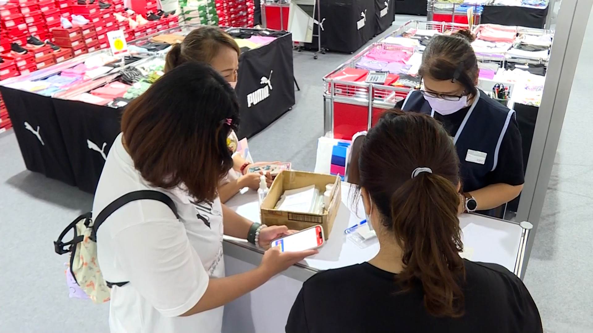 臨時特賣會上,第一線人員賣力衝業績,而復業的消息傳到,這裡的櫃姐和品牌廠商,大家都面露笑容,希望早點回公司正常上班。