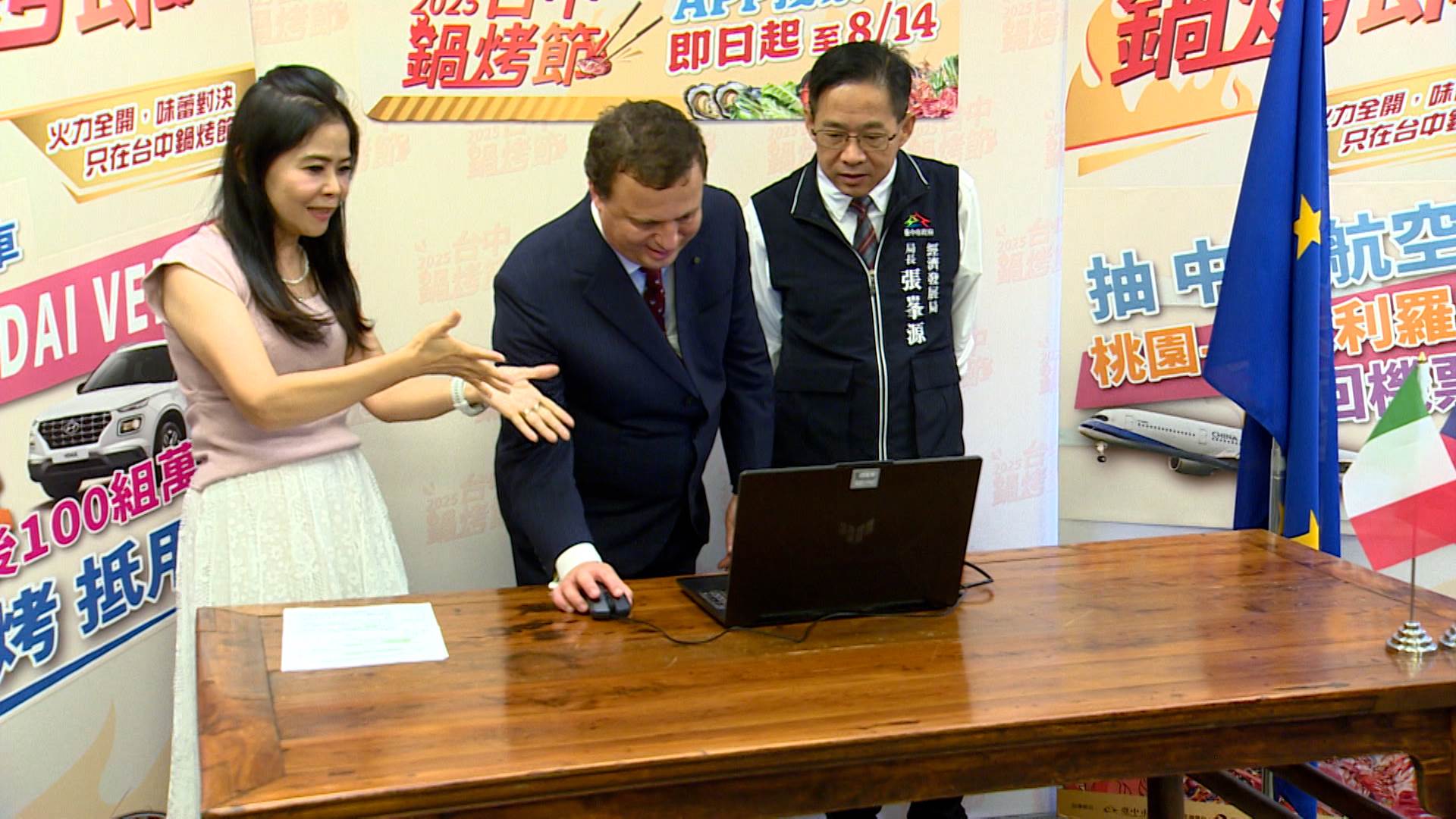 臺中市經發局長張峯源:「我們27號,盧市長會親自頒出今年臺中鍋烤節百組的萬元券,還有一輛好車,最主要的我們會在火鍋燒烤還有蔬食,會公布五大得獎廠商。」