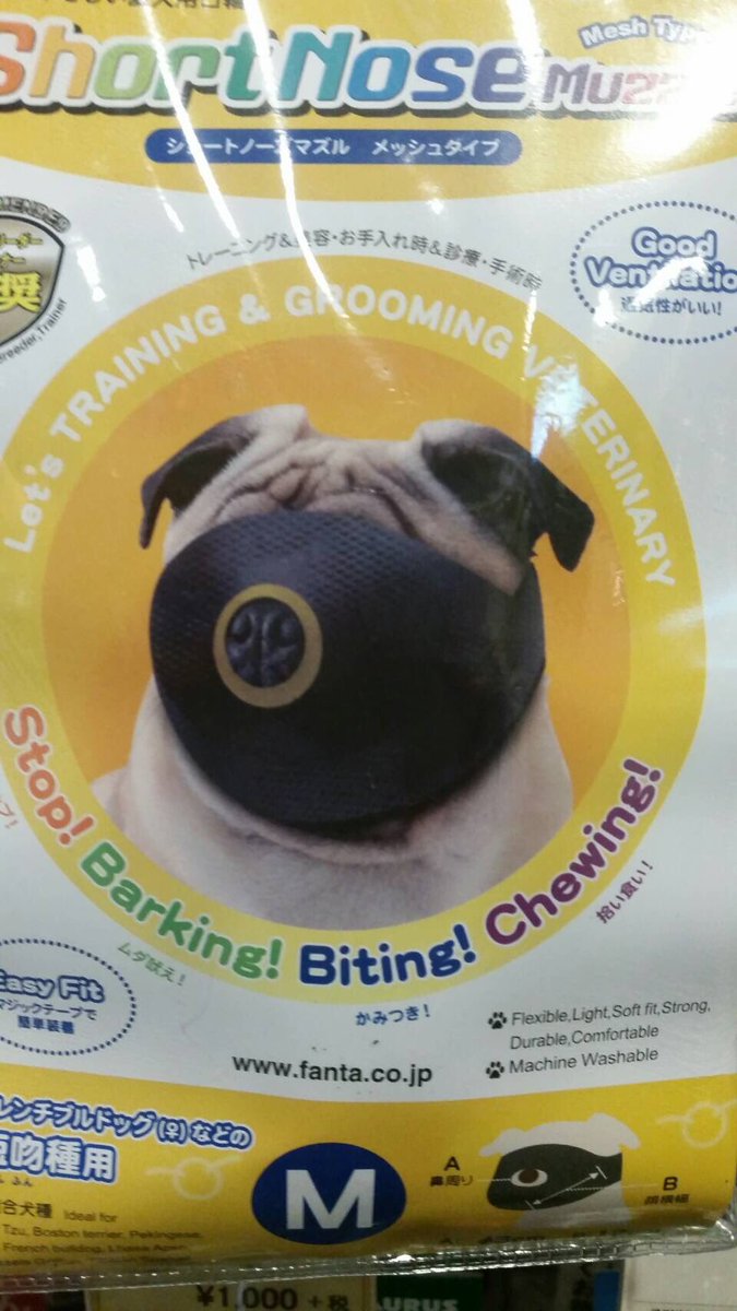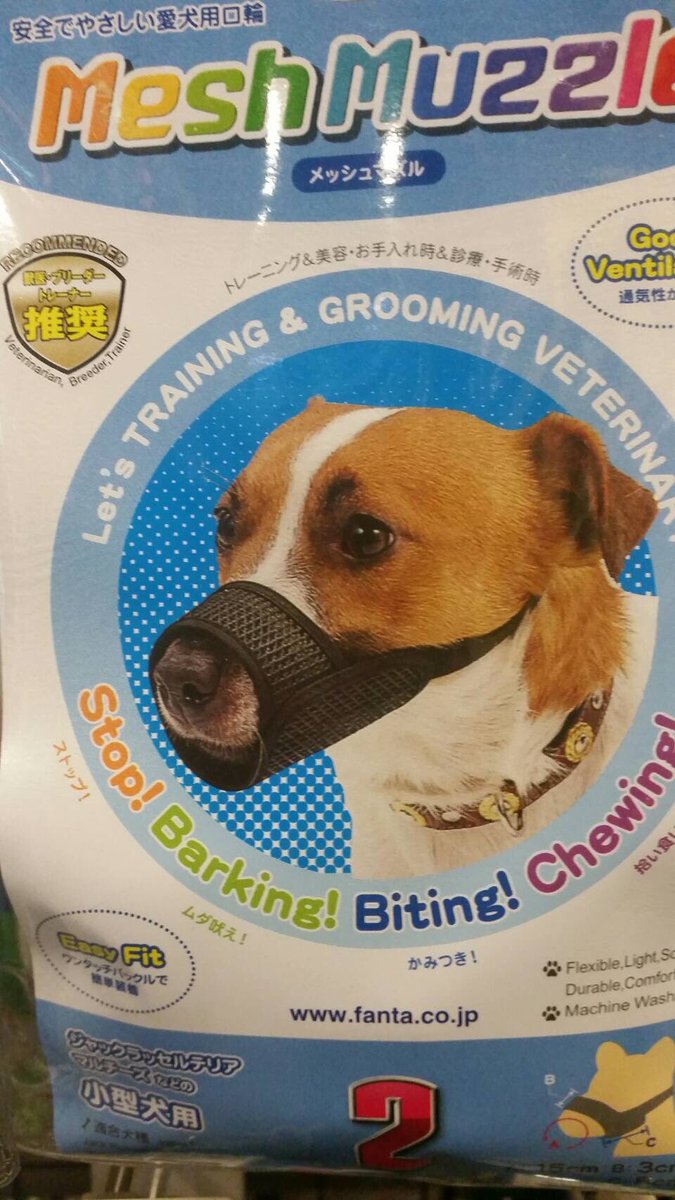 有網友在Twitter上分享一組照片,是日本廠商針對各種狗狗的臉型和嘴型,貼心設計的「防咬面罩」款式,並強調產品可以防咬,也能夠確實避免狗狗在手術後舔咬傷口。從包裝上來看,一般狗狗的面罩大同小異,戴起來都很正常,剛剛好可以圈住嘴巴。