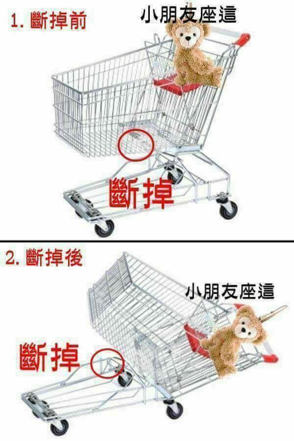 上個月30日年初三,桃園有一對夫婦帶著才四個月大的兒子和4歲女兒到賣場購物,在採買東西前,夫婦先是到手推車區,想讓女兒坐在手推車上,於是一把將女兒抱起來,沒想到才剛坐到小孩專用椅子,推車的焊接處突然分開,支架瞬間斷裂,整個推車的上半部往上掀起並落下,導致原本在推車上的女童臉朝下重摔在地,當場大哭起來。