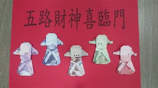 金雞年開工吉日少,不過挑對好日子再加上開運小法寶,還是可以讓你財運發發發!有網友就自己摺出「五路財神」,還PO到網路上,令不少網友看完讚嘆道:「超狂!根本巧手」、「但毀損國幣就GG了」。