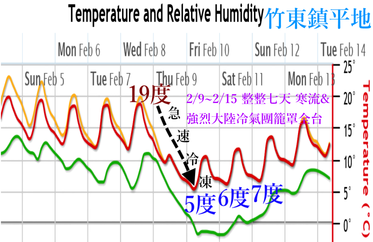 臉書粉絲團「福爾摩莎氣象萬千」指出,這波強烈大陸冷氣團將籠罩全台灣長達7天以上,從周四(9日)到下周三(15日)前後,美國NCEP GFS最新數值顯示,屆時桃竹苗地區海拔150至300公尺的地區,低溫將只剩5至7度,台北市則是9到11度。