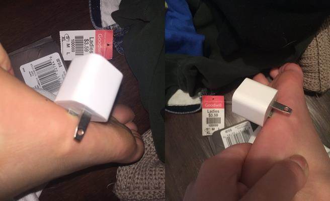 原來,案發地就在一間滿地衣服、褲子、雜物的凌亂房間裡,完全無法掌握成堆的衣物下,究竟有甚麼恐怖陷阱。一名網友一個不小心,正當一腳瀟灑的踏出去瞬間,竟然讓手機充電插頭扎進自己的腳底板,插頭多深扎得多深,可見當時這一踏的力道絕對非同小可,惹得網友大呼「好痛啊!」