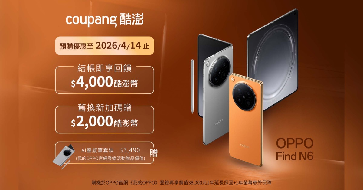 酷澎攜手OPPO 火箭速配Find N6全球最平摺疊機