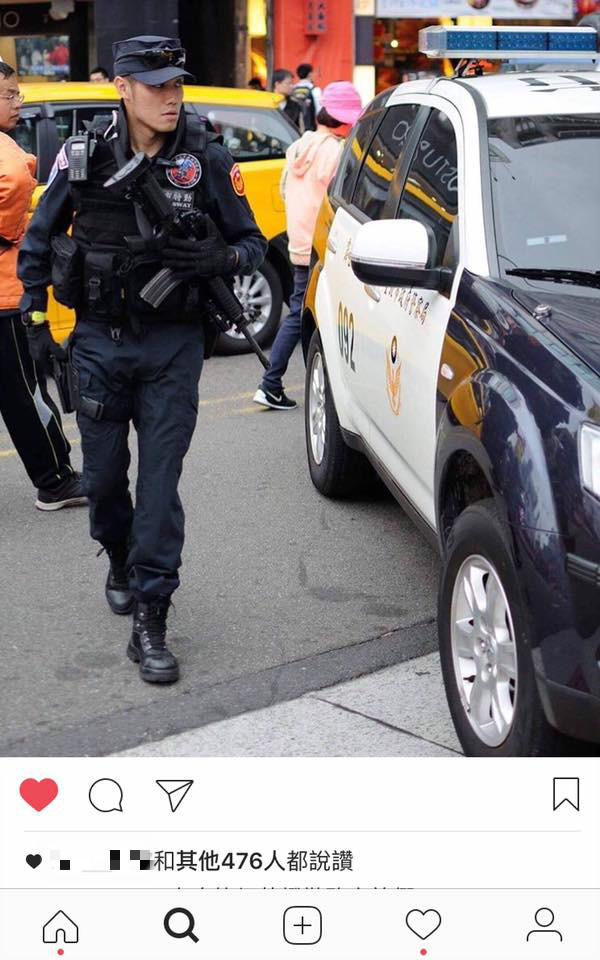 台灣警界其實有很多帥警、警花,高顏值搭上穿著制服的模樣,真的讓人很心動。一名女網友8日在臉書「爆廢公社」分享一張照片,其中一位特勤男警正在執行勤務,他專注的神情、認真的模樣,高顏值以及好身材,讓女網友們全都暴動了,想要「報警處理」!