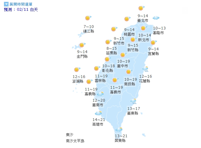 ▼2/11白天溫度預測(圖/中央氣象局)