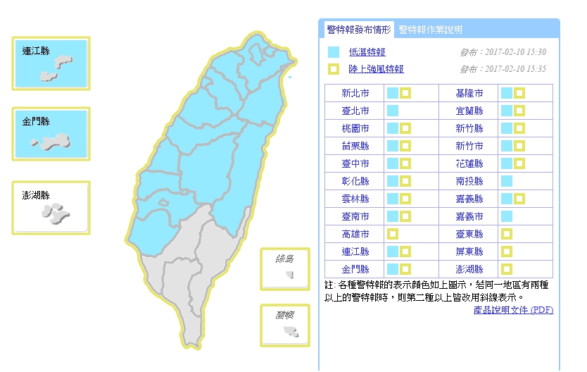 ▼18縣市低溫特報(圖/中央氣象局)