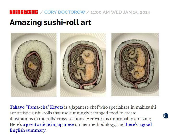 事實上,原作者清田貴代在臉書的粉絲專頁上面有分享許多自己的壽司畫作品,從可愛的卡通圖案、世界名畫,到各種複雜的圖形都難不倒他,在多年前就曾被國外媒體報導過,也難怪網友一看就馬上認出來了。
