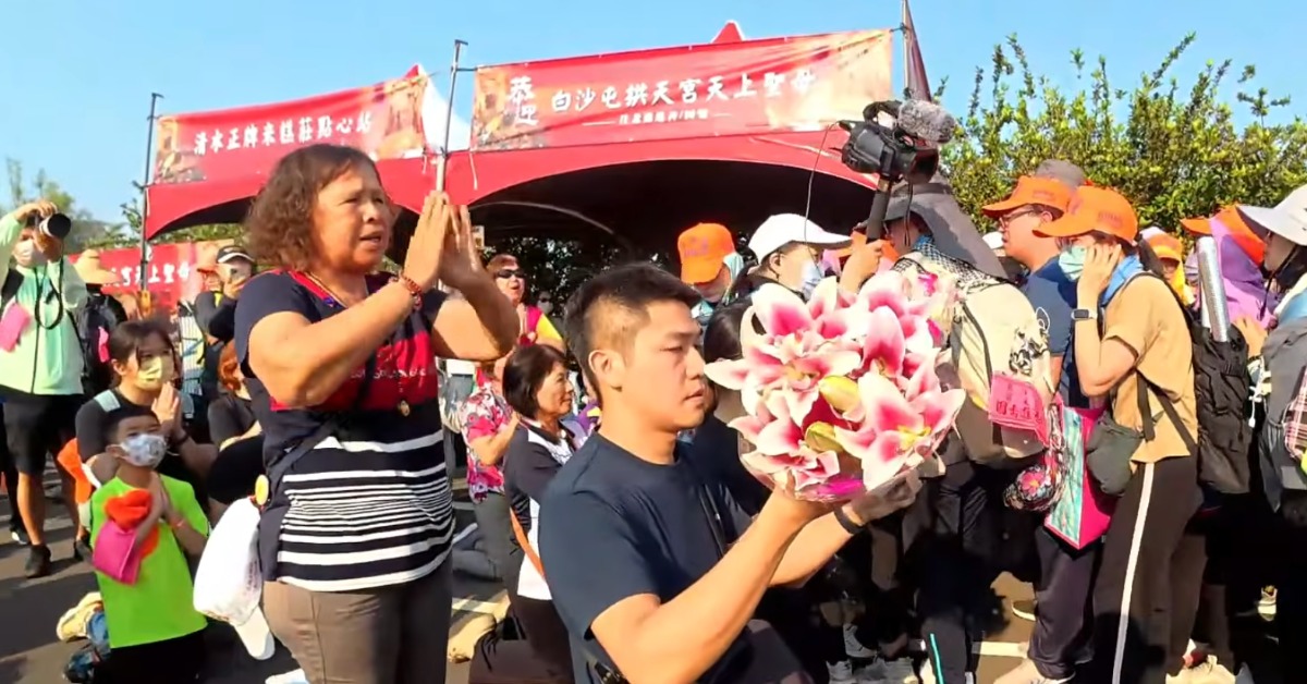 廟裡廟外擠滿人潮,一片人聲鼎沸鑼鼓喧天,大批信眾齊聲高喊高喊。賴總統親請媽祖出神龕,綠營五名縣市長參選人也陪同,藍營則有台北市長蔣萬安,台中市長盧秀燕等人觀禮登轎,見證「粉紅超跑」八天七夜進香啟程。