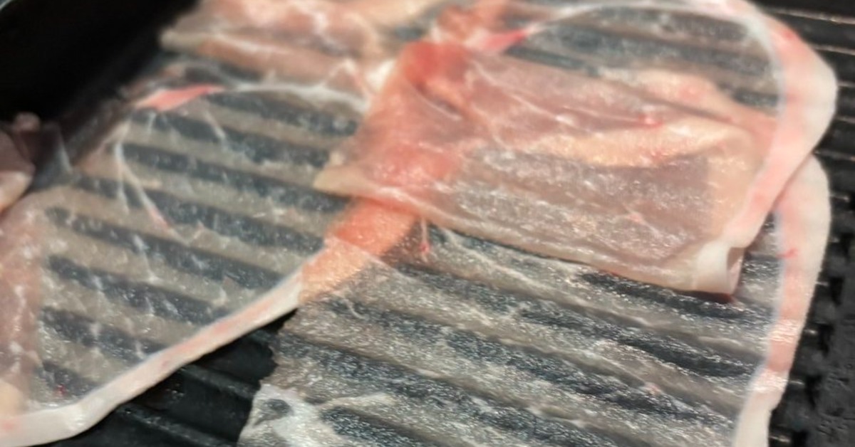 在社群媒體引發關注的是顧客上傳的「豬里肌」肉片。從照片可見,擺放在黑色托盤上的肉片薄如蟬翼,甚至可以透出托盤的顏色,如同隱形一般。這則貼文一出,引發多名網友分享類似經驗,「隱形豬肉片」、「隱形牛肉片」的照片持續擴散。