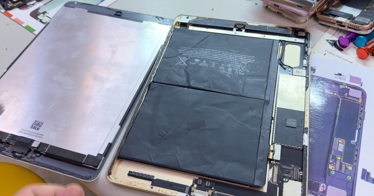 當事業者:「我們要拆解手機或平板的時候,我們都會先幫它控制溫度,加熱會比較好拆解,比較不容易傷到機子本身的零件。其實舊型號的平板電池就比較容易發生這件事情,因為在我手上已經不是第一台了。」