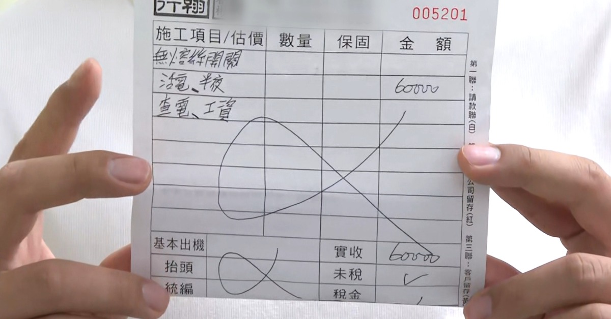 當事民眾:「後面有去找店家商量,他沒辦法提供給我完整的收據或明細。如果一定要拆分的話,3萬當材料、3萬當師傅錢。」
