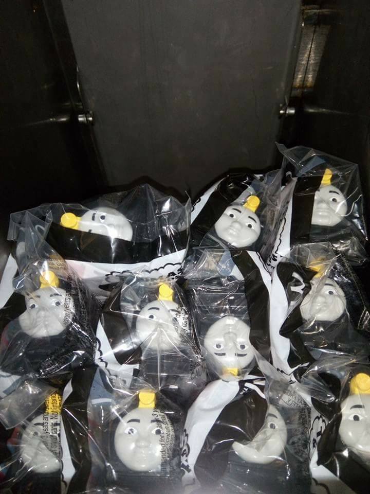 該名店員貼文表示,麥當勞最恐怖的地方,其實是存放玩具的儲藏室。從照片中可以看到,一輛輛包著塑膠袋的「湯瑪士小火車」,在陰暗的空間裡,原先俏皮的臉部表情與眼神也忽然間顯得有些驚悚,而在原PO打燈拍照的情況下,那股詭譎的氛圍更是濃烈,原Po對這充斥著整個黑暗空間的「湯瑪仕小火車」表示,覺得噁心,「玩具我補到一半,赫然發現原來那麼恐怖」。