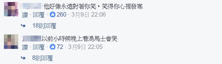 這三張照片PO出後引發網友熱烈討論,說:「根本就是鬼王棺」、「他好像永遠對著你笑,笑得你心裡發寒」。也有網友說:「沒看標題會以為命案」、「我最怕的卡通人物」、「以前小時候晚上看湯瑪士會哭」,還有網友說:「我小時候看到我媽媽都會哭,因為我媽媽長得像湯瑪士」,笑翻了一群網友。
