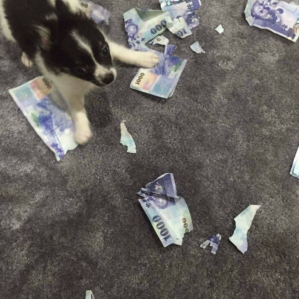 家裡面有養寵物的人都能體會,有時候放任調皮的毛小孩在家,就得有心理準備有東西會被抓壞,舉凡沙發、書本、窗簾等等,常常都是家中的受害物品。而最近有網友分享了自家狗狗幹得好事,牠竟然把一張張的千元大鈔給咬碎,讓大家看了都笑翻。