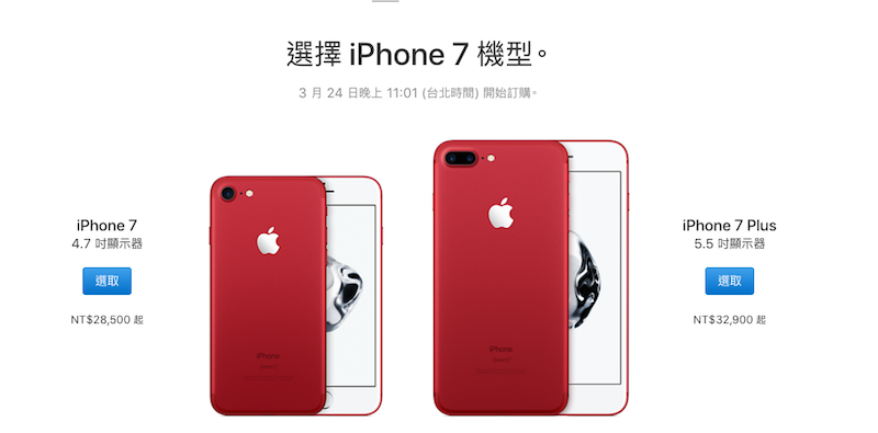 ▼蘋果官網公布3/24開賣iPhone7紅色版。圖/蘋果官網