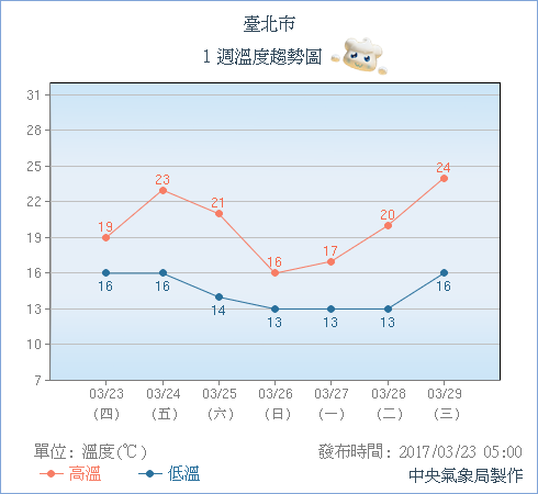 ▼一週溫度趨勢圖(圖/中央氣象局)