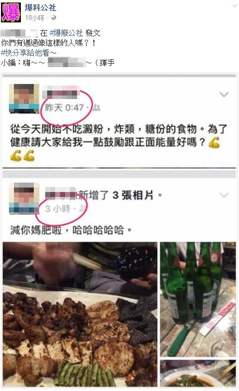 網友在《爆廢公社》上PO文,「從今天開始不吃澱粉,炸類,糖分的食物。為了健康請大家給我一點鼓勵跟正面能量好嗎?」這是每個在