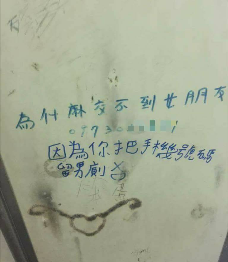 公廁時竟在門上看見一名男子寫下關於單身的抱怨,還留下了自己的手機號碼。而竟也有人在電話下面回覆,讓網友大呼:「神中肯!」