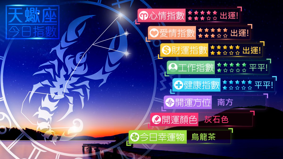 財運:今天你尋找資源格外不怕辛苦,因此在某個開銷上有了突出表現的節省。