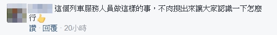 ▼網友紛紛留言讚賞列車服務員的溫暖舉動(圖/爆料公社)
