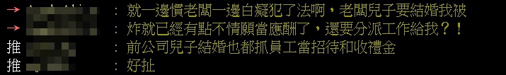 但有網友表示:「自己的加班費自己收的概念」、「物盡其用,前老闆也是請會計收禮金」、「前公司兒子結婚也都抓員工當招待和收禮金」。