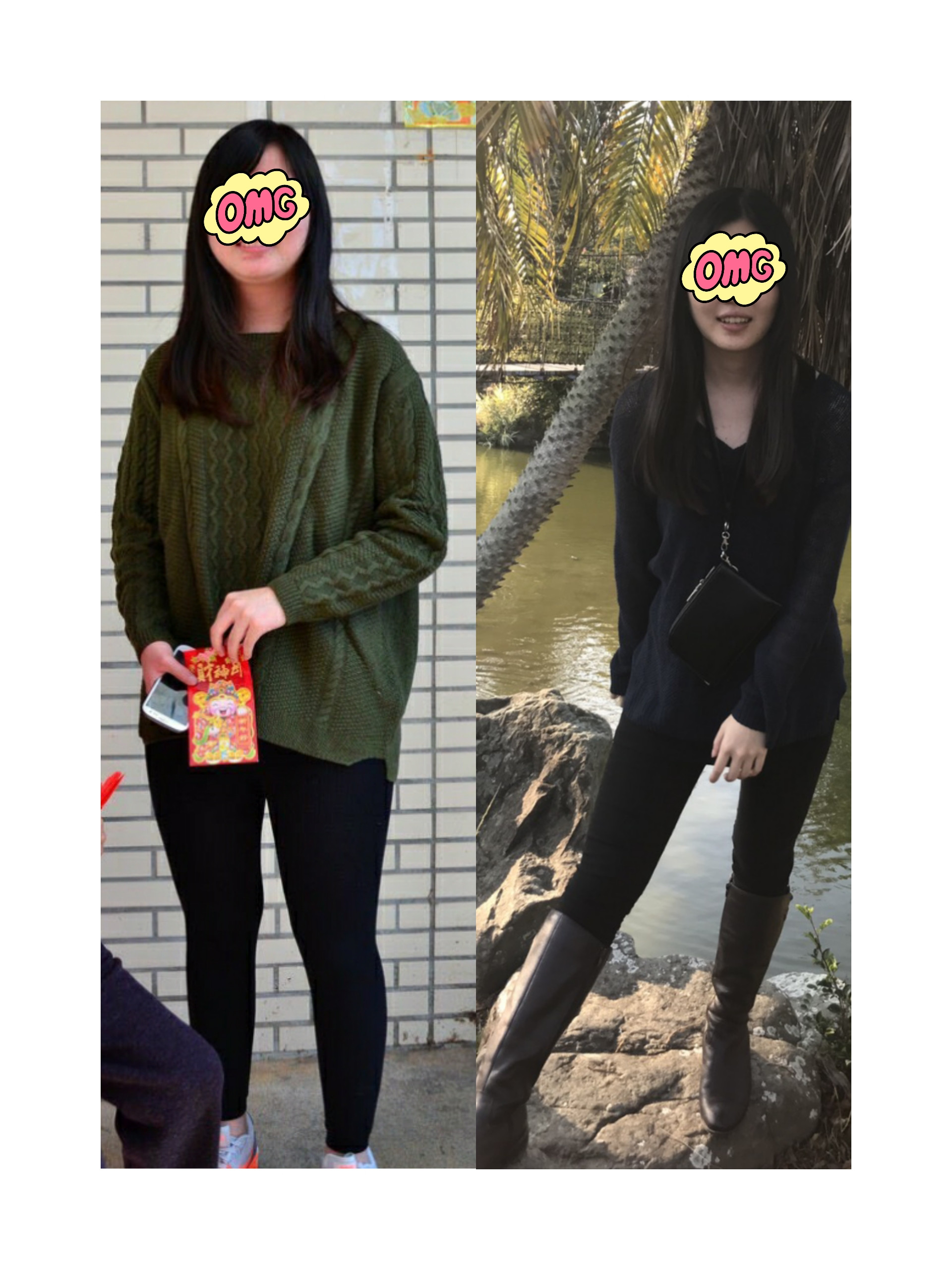 《Dcard》分享文章,秀出三個月前朋友照片,當時朋友身高168公分,體重65公斤,臉龐微圓笑起來有點雙下巴,身材較為魁武,但是那時她卻不認為自己胖。誰知道有天朋友不知道哪根筋不對,突然覺得自己太胖,開始了超勵志的減肥人生,短短3個月就減重成功,減到剩54公斤,尺寸小了好幾號,胖胖臉頰變超V小臉,原本粗壯的腿也變成鉛筆腿。