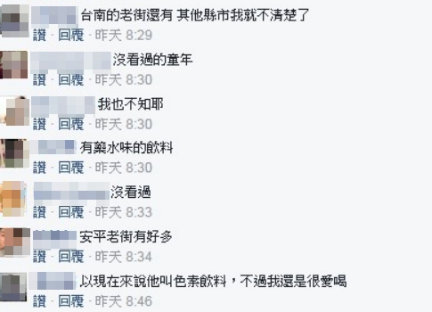 這張「阿婆水」的照片,讓許多網友回憶起童年時喝的景況,味道更是讓人懷念,網友紛紛表示:「超好喝」、「好喝,味道超奇妙」、「以現在來說它叫色素飲料,不過我還是很愛喝」、「我小時候很愛喝,一罐才5塊、現在應該沒有飲料賣5塊了吧」。而也有許多網友完全沒聽過這個古早味「阿婆水」,表示:「沒經歷過的童年」、「不知道+1,年輕真好」、「終於看到不認識的古早產品,好感人」。對於許多網友沒看過這種飲料,原PO表示這個味道獨特的阿婆水「台南老街還有」,也有網友回應:「安平老街有好多」。
