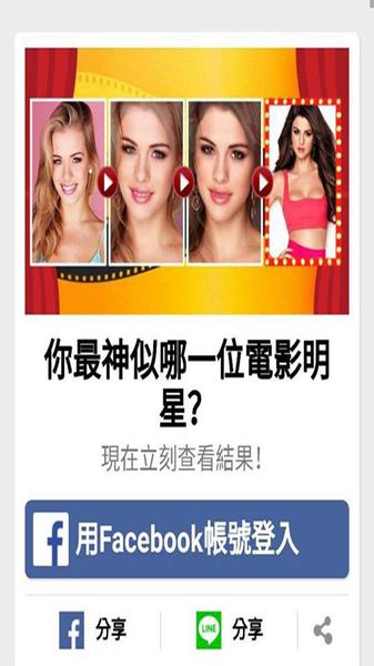 「你最神似哪一位電影明星」是由韓國廠商 Vonvon 所推出臉書遊戲之一,請只要以臉書的帳號登入並同意給予授權,請就可以選擇自己的大頭照並挑選男性或女性,就可讓Vonvon類似PS的方式來配對出最神似的中、港、台、韓的影星。由於配對出來的影星都是俊男美女,就可讓可以滿足自己變成萬人迷的虛榮心,所以玩的人越來越多且樂於在臉書上的動態PO文分享。