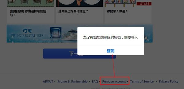 至vonvon網站 >下方「Remove accont」>「登錄帳號」後「確定」。