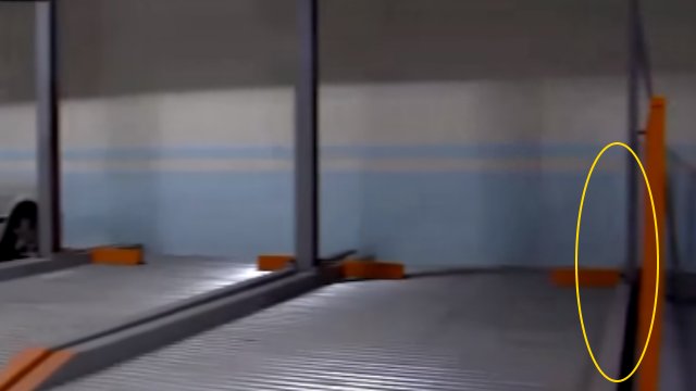 車門一開就碰撞到欄杆,只能開出一點縫隙,這是林先生花了65萬購買的下層機械車位,不過他質疑設計大有瑕疵,因為他連上下車都無法好好走,鐵欄杆距離車位有多近,不只駕駛上下車都必須要側身走,萬一上面的機械車位倒塌,恐怕還會影響逃生路線。