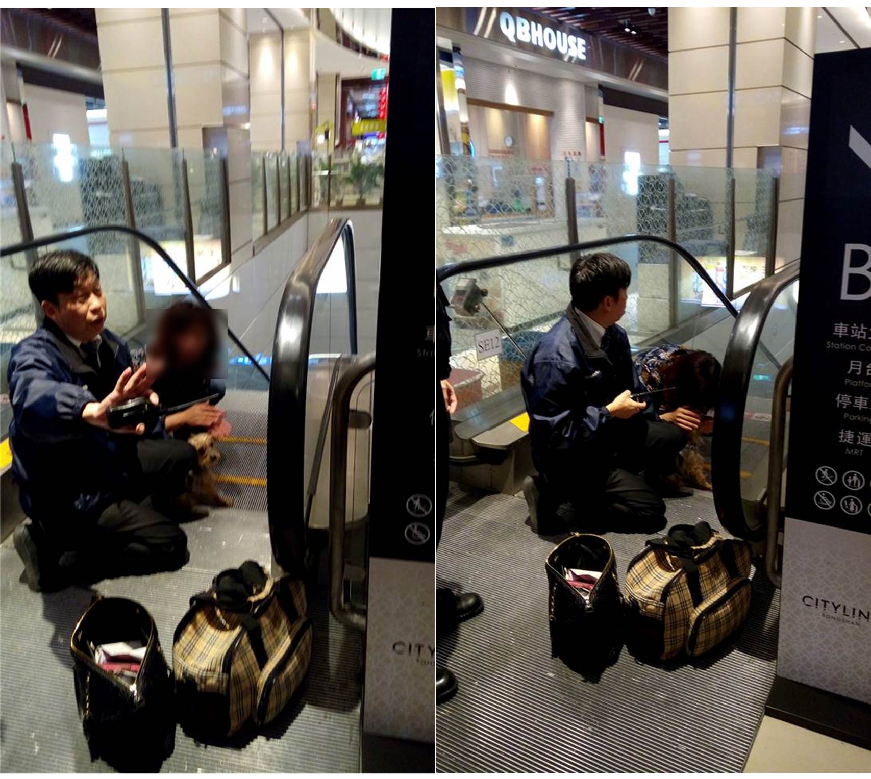 網友在臉書《爆料公社》PO出2張照片,指出12日在Citylink松山車站,看到一名女子,帶狗狗搭手扶梯,沒有把狗狗裝抱起或裝籠就算了,居然還讓狗狗自己踏上手扶梯,導致狗狗的腳慘被手扶梯夾住,狗狗不斷地哀號,讓原PO聽了好心疼,忍不住痛罵「那慘叫聲多淒厲,該死的主人,該死的主人,該死的主人,講3次是真的很生氣,還好保全請機電人員把一片階梯拆掉,狗狗趕快送醫!」