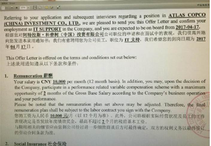 該名網友在批踢踢發問,質疑「上海工程師的薪資是台北的3倍」的貼文,引起網友們的討論,其中有名網友就貼出外商在當地的錄取薪資單,表示在大陸工作,薪資並沒有大家想像中的高,只見照片中的錄取通知單上,職稱就是原PO所稱的上海工程師,錄取薪資為1萬元人民幣(約4.5萬台幣),年度績效獎金最高不超過2個月,就整體來看,薪資根本沒有所謂的台北3倍之多,據了解,這是瑞典一家前30大企業,在大陸投資的公司。