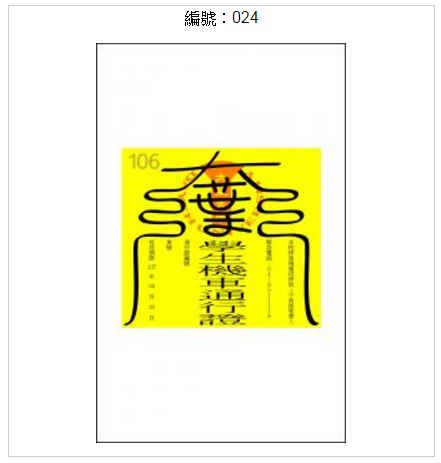 符咒根本一樣,上頭寫著寫著「大葉學生機車通行證」。原PO表示,「這張車證現在180幾票,海放其他作品,X我下學期不想黏這張符咒在機車上啊,搞不好還會夜路遇到鬼被肛」,不過選情經過一夜選情有了大轉變,編號050的以機車儀表板為主軸的作品,投票數超越了024作品,截至20日晚間18時35分,編號024得票840票,編號050得票842票,以兩票之差領先,出現強勁的競爭者,原PO的心理應該是安心了不少。