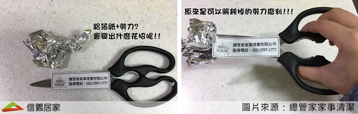 剪刀、菜刀用久了總會鈍,但又不想花錢買磨刀工具嗎?拿出家中常備的鋁箔紙來,用菜刀切開對折的鋁箔紙、或用剪刀幾下鋁箔紙,你就會發現鋒利的刀鋒回來了!