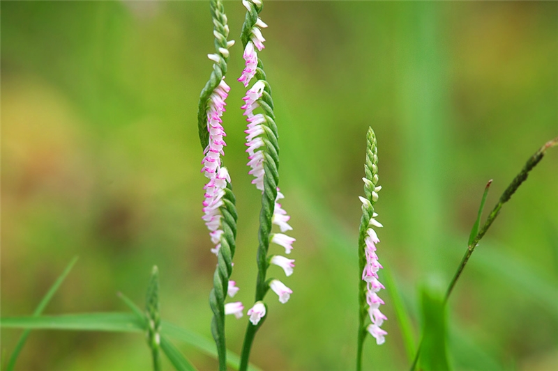 綬草開花時宛如綬帶,粉紅花朵盤旋而上很漂亮。但綬草長僅數10公分,看起來很像雜草,不易分辨,容易被忽視或當成雜草錯殺。中醫業者說,綬草的花期在