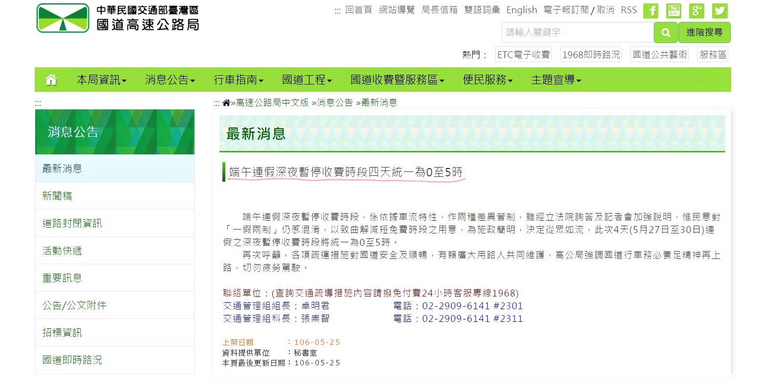 ▲(圖/端午連續假期的夜間免收費時段今日又再調整/取自